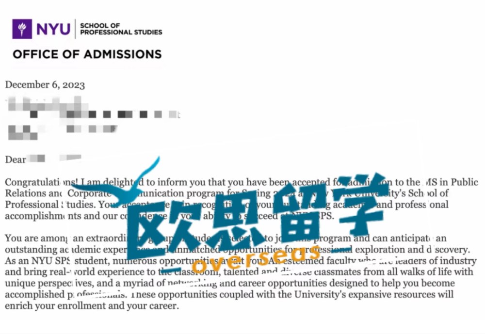 【1207录取动态】纽约大学公共关系和企业传播专业硕士录取