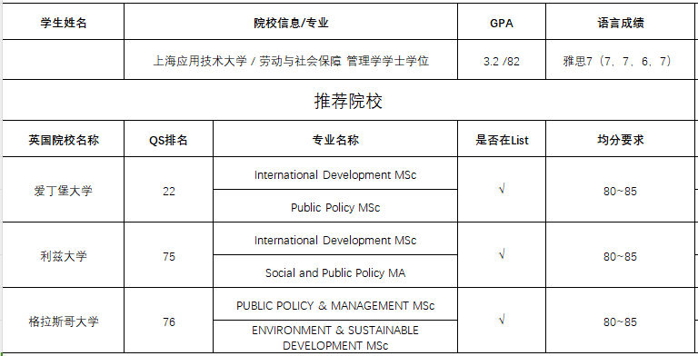 上海应用技术大学(双非)劳动与社会保障 管理学学士学位,绩点3.2,意向英硕人力资源及管理学,推荐院校及专业如下: