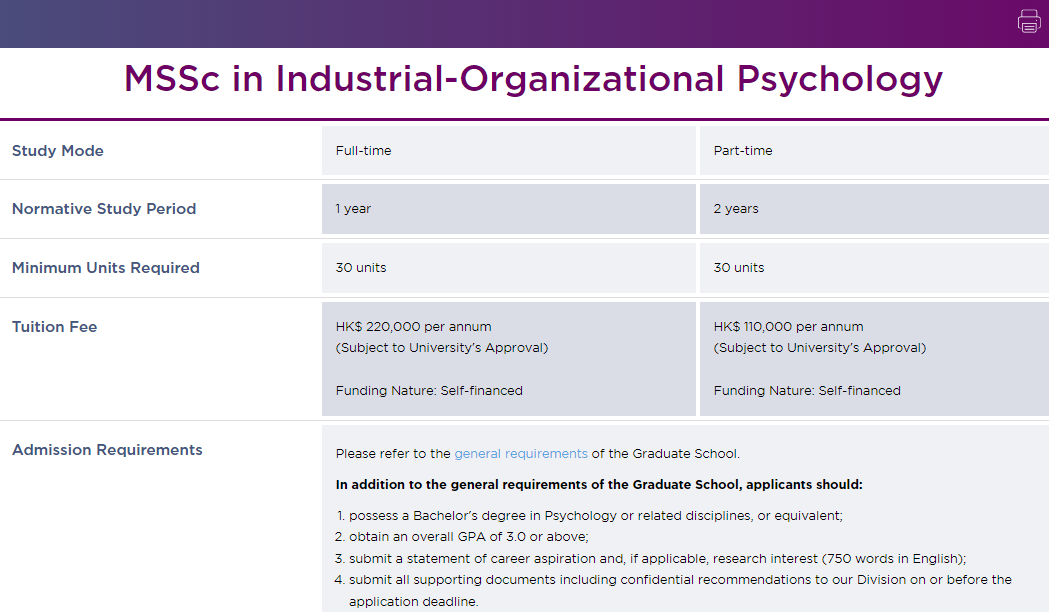 一个心理学方向的一年制授课型硕士项目,要求心理学相关专业背景,学费也挺便宜的,只要22万HKD。