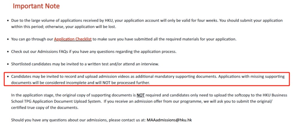 这不是港校第一次在申请环节增加新的筛选方式了。之前香港大学商学院提前批也新增了视频面试材料递交环节。可见,在申请人数越来越多,申请者背景越来越好的情况下,学校也选择采用新的方式筛选学生。