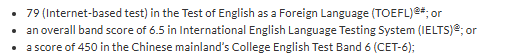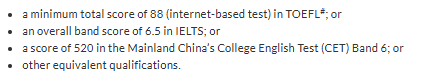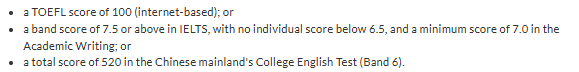 不同项目具体最低分数要求不一样的,举例,现在还没更新的25fall要求:
