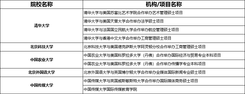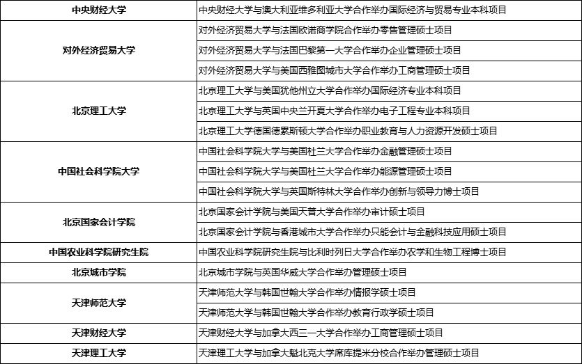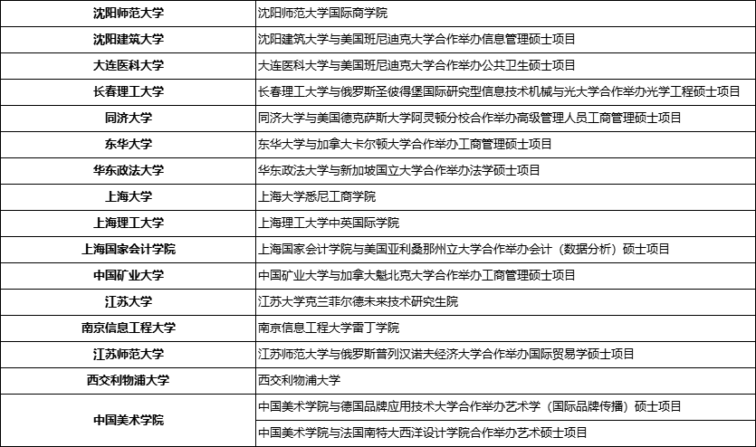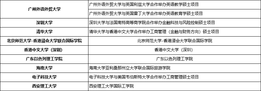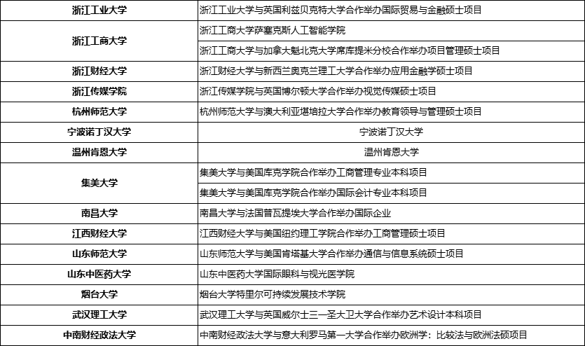 参与招生的中外合作办学大学名单如下:
