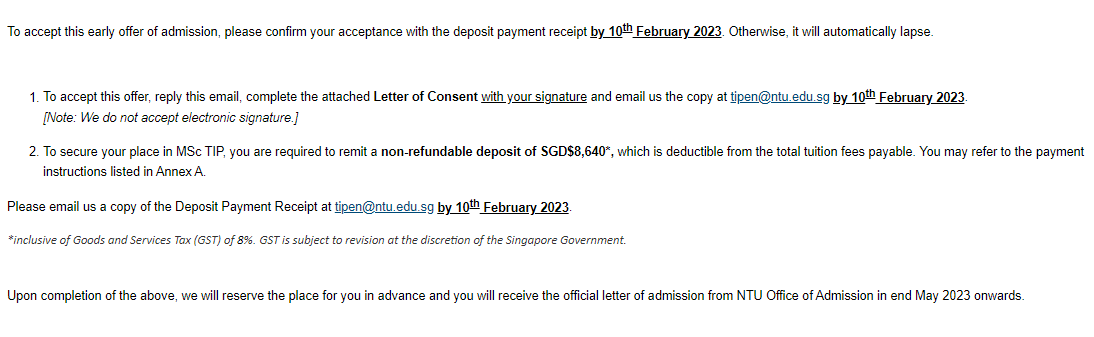 需要在2.10号前交押金,接Offer, 学校会在5月份左右会发正式的offer, 更多申请及面试细节可以咨询欧思留学李老师微信:13382004272.