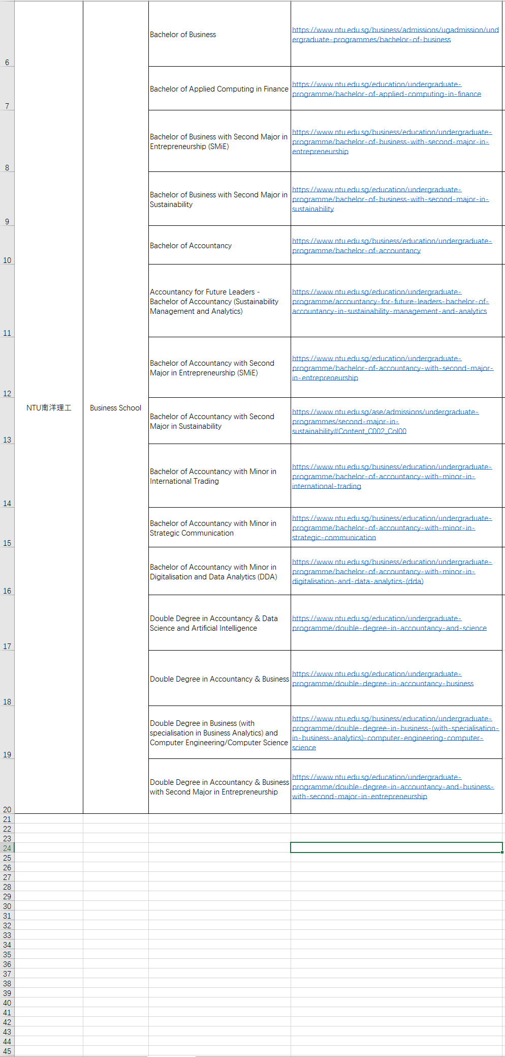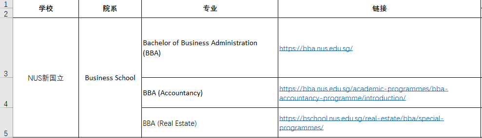 新国立和南洋理工商学院本科项目汇总