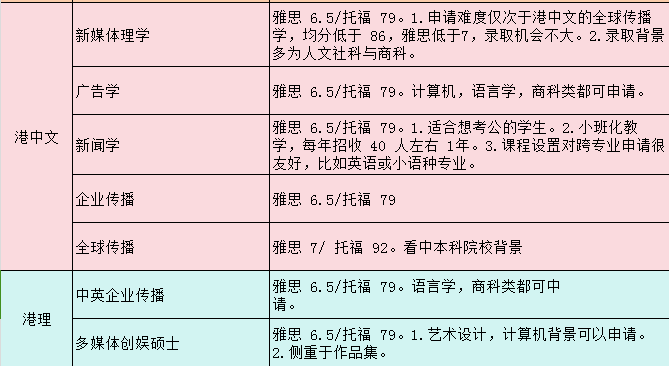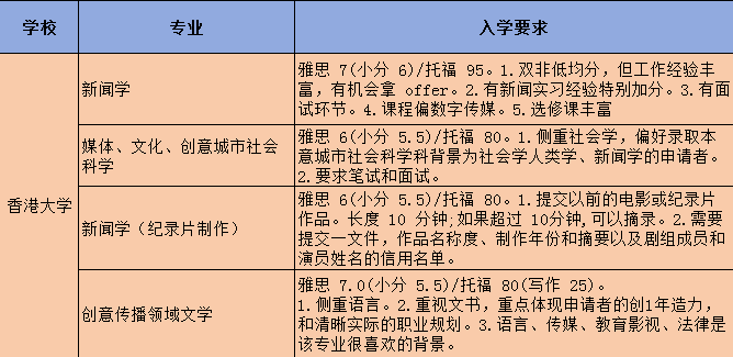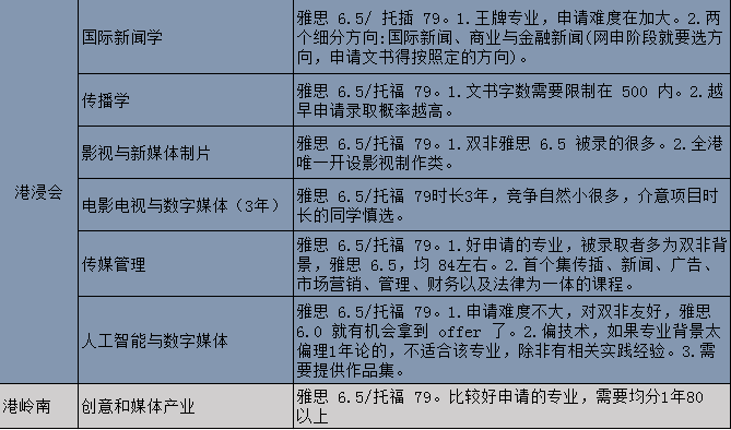 但香港科技大学和教育大学在传媒类专业上并非特别突出,因此主要整理了其他六所高校的传媒类硕士专业。