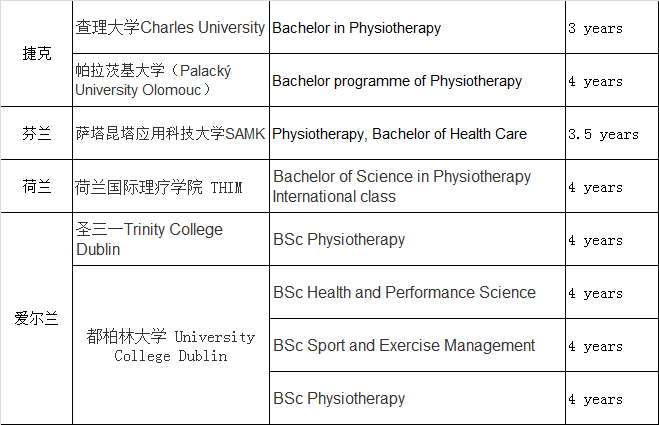 欧洲理疗专业课程
