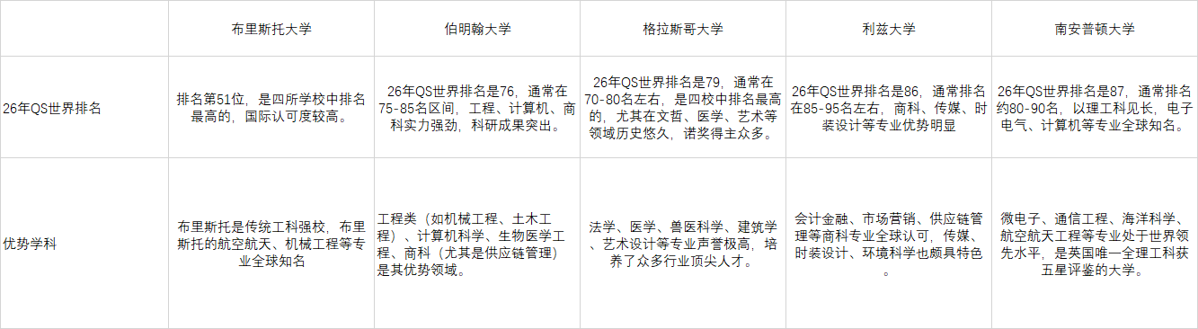 英国QS前100的8所学校对比及录取案例分享